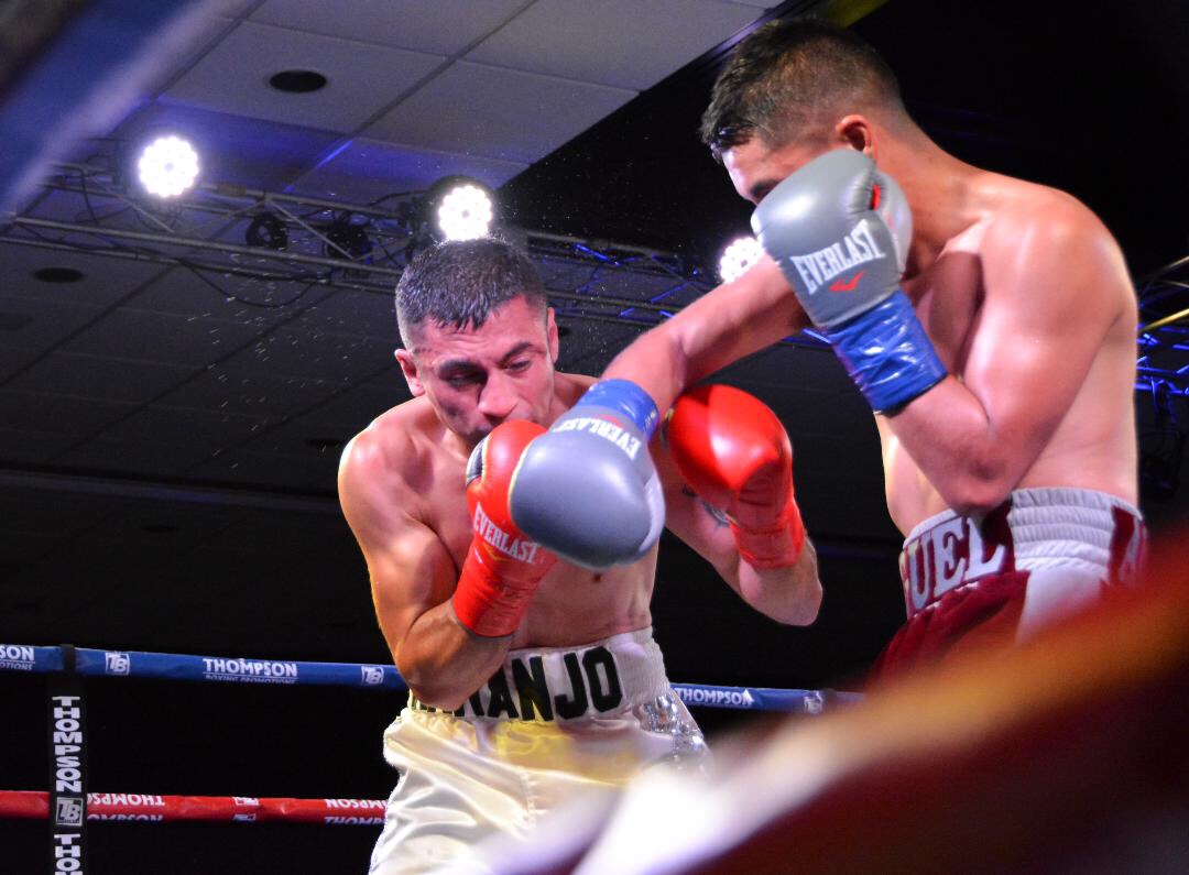 By Barbara Pinnella – On Friday night Thompson Boxing Promotions presented Locked ‘N Loaded, once again at the Doubletree Hotel in Ontario, CA. The main event of the evening saw welterweights Giovani “El Gallo de Oro” Santillan (24-0, 14 KOs) went up against Alejandro “Bad Boy” Barboza (11-2, 7 KOs), and Santillan was defending his WBO NABO welterweight belt. This title fight was to go a scheduled 10 rounds.
