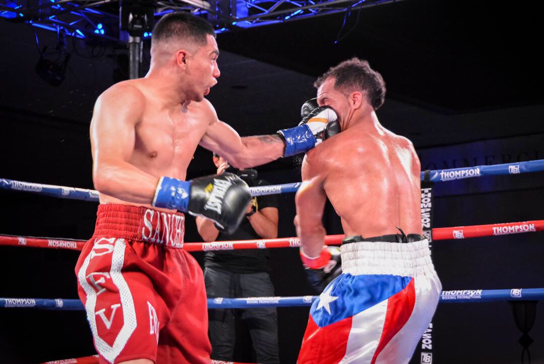 In the co-main event, Saul Sanchez (8-0, 4 KOs) faced off opposite Sam Rodriguez (5-3, 3 KOs) in a bantamweight bout that was scheduled for six rounds. The first round was a very strong one for Sanchez, as he almost knocked Rodriguez down. He stayed on the attack throughout the round.