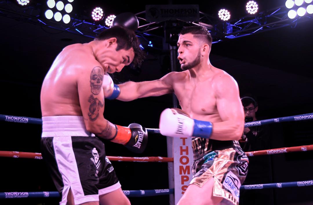 On this night we were at the Doubletree Hotel in Ontario, CA. for the Thompson Boxing Promotions show, Locked ‘N Loaded. The main event this evening was between Erick “All American Boy” Ituarte (21-1-1, 3 KOs) and Jose “Hollywood” Estrella (20-16-1, 14 KOs). These two featherweights were scheduled to go 10 rounds. It has been almost a year since Ituarte has been in the ring to fight.