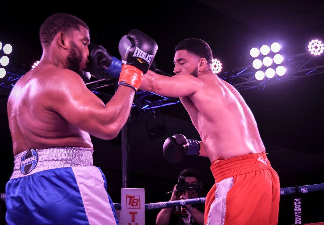 Heavyweights were next as Oscar Torrez (5-0, 2 KO) faced off against Thomas Hawkins (4-4, 1 KO) in a bout that was scheduled for four rounds. There was virtually no action until the last 20 seconds or so, when Torrez finally felt he could unleash on Hawkins. Oscar took up where he left off at the beginning of the second, but about midway the action slowed down again. Up to the halfway point, Thomas did not seem to have an answer for Torrez.