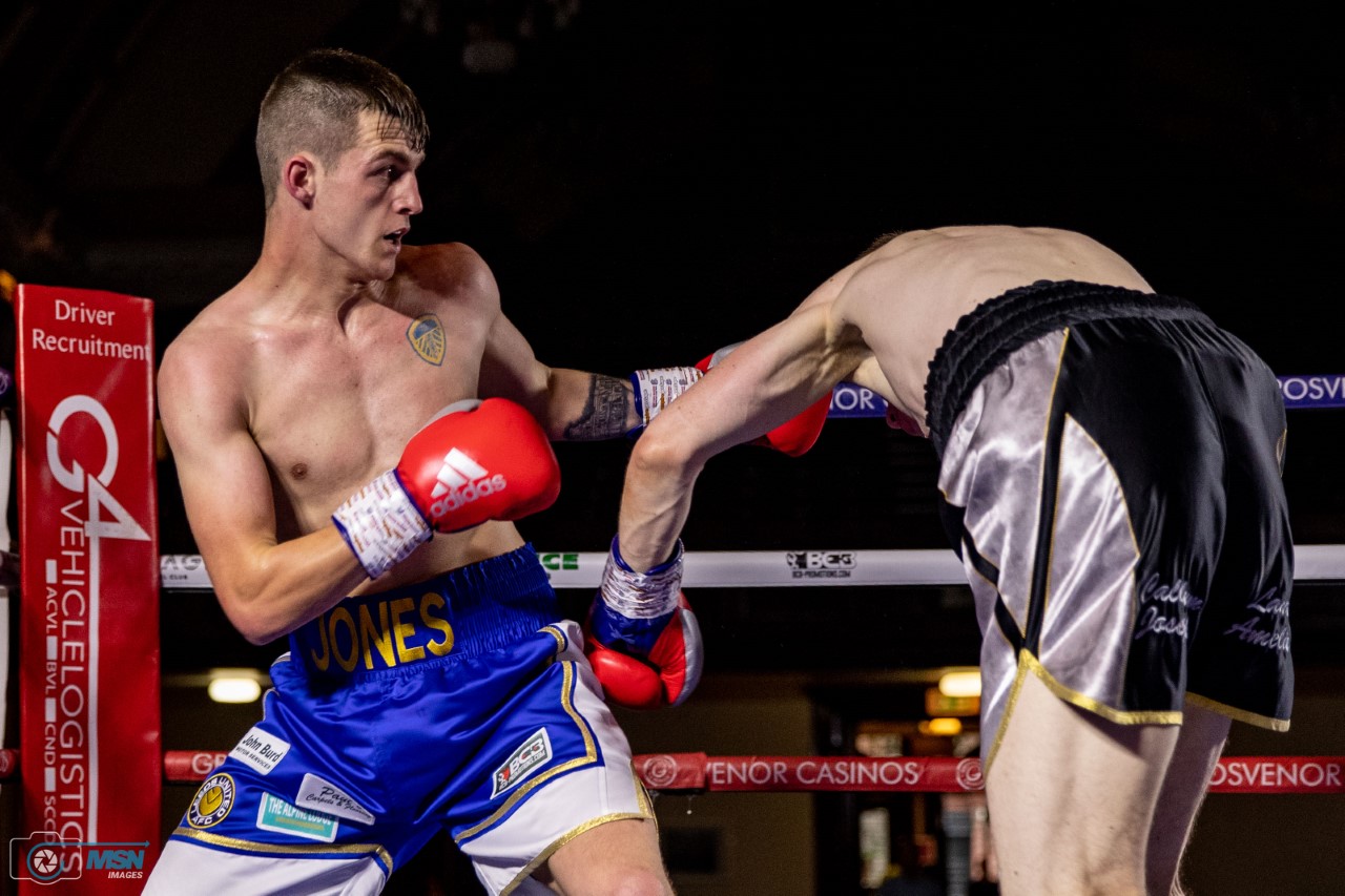 Former soldier Alex Jones got his professional career off to a winning start. The Tiverton scrapper picked up a 39-37 victory over Brierley Hill’s MJ Hall to open the show.